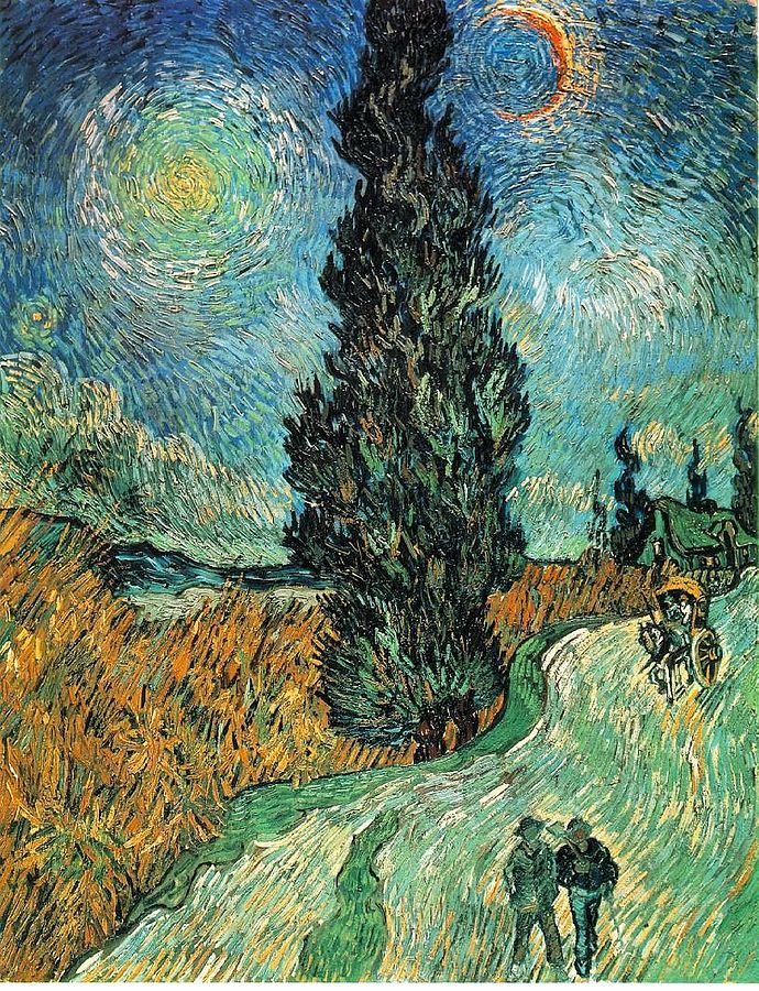 100. VAN GOGH. The Road with Cypresses. Otterlo, Holland, Kröller-Müller Museum.